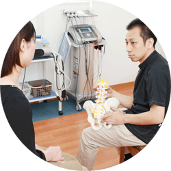 身体の土台である骨盤を触診、視診、動診などで正確に検査し骨盤周囲の筋肉を緩め、ゆっくりと骨盤を調整していきます。