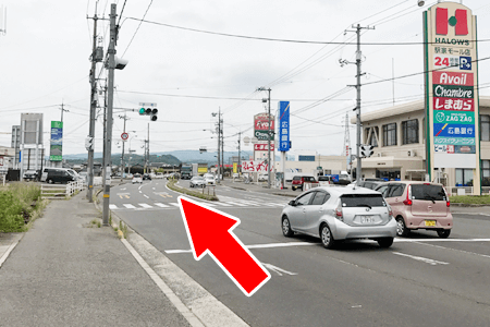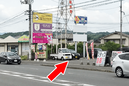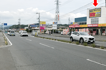 1国道486号線を神辺方面から府中市に西方面へ向かうと右手に駅家モール店が見えてきます。駅家モール店の交差点をさらに直進します。