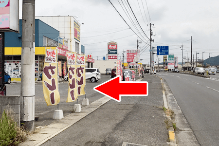 1国道486号線を府中方面から神辺方面へ向かうと左手にユーホー駅家店が見えてきます。ユーホー駅家店の交差点をそのまま直進します。