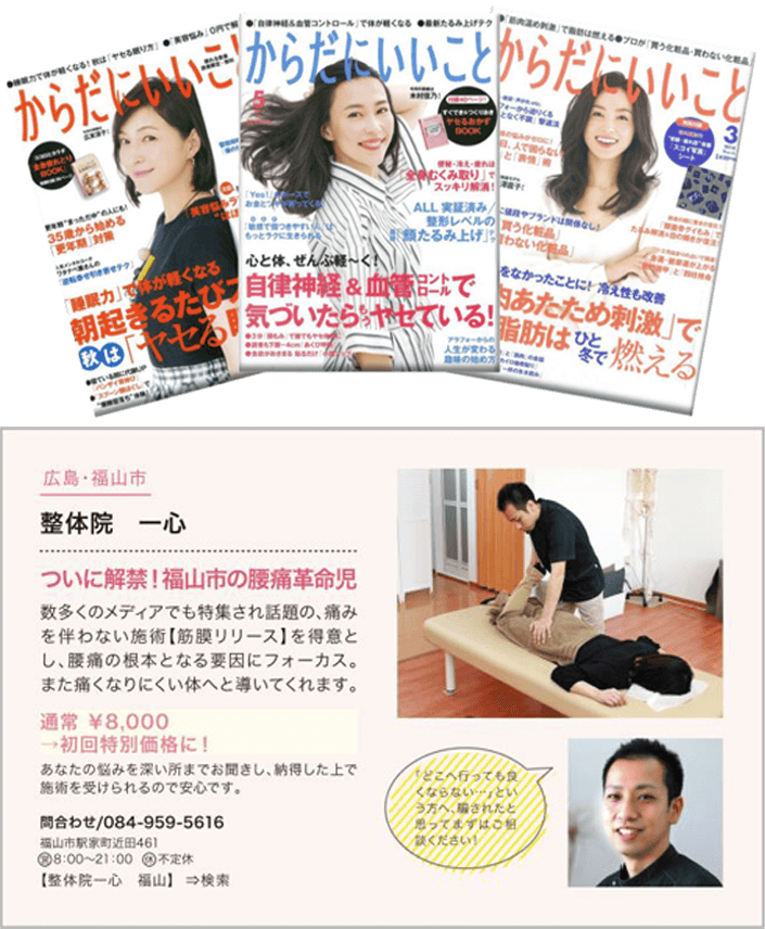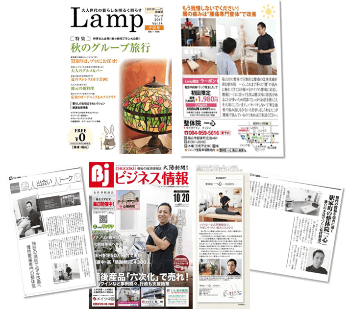 地元誌にも数多く四十肩・五十肩専門の整体院として