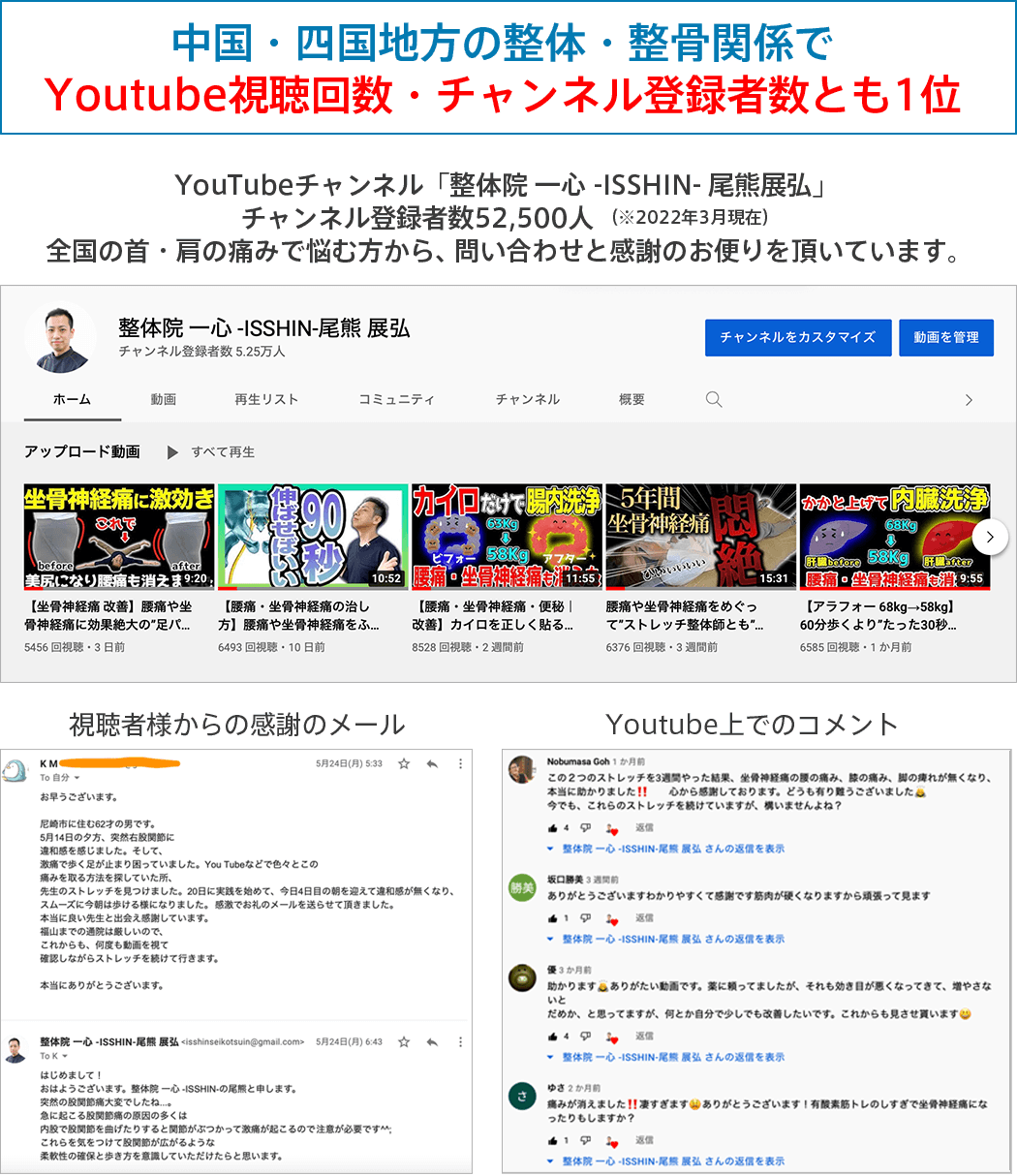 国家資格を持ち、多くの臨床経験を持つ、あなたの症状に真正面から向き合ってくれる福山市の整体で圧倒的な四十肩・五十肩の改善実績を誇る整体院 一心に来院しその四十肩・五十肩で我慢することのない人生を手に入れる道。