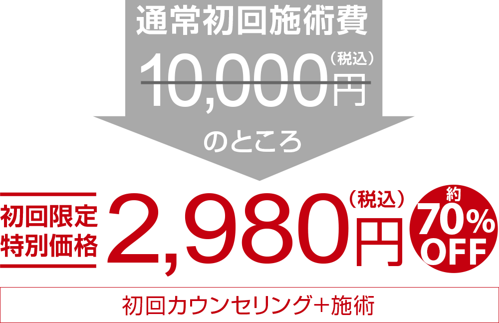 ※10月9日(土)以降のご予約は通常初回施術費料金である10,000円(税込)を頂戴致します。