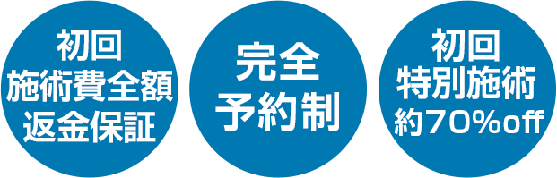 1mmも改善しなければ、その場で施術費を全額返金させて頂きます。(※返金は初回の施術費のみとなります。)